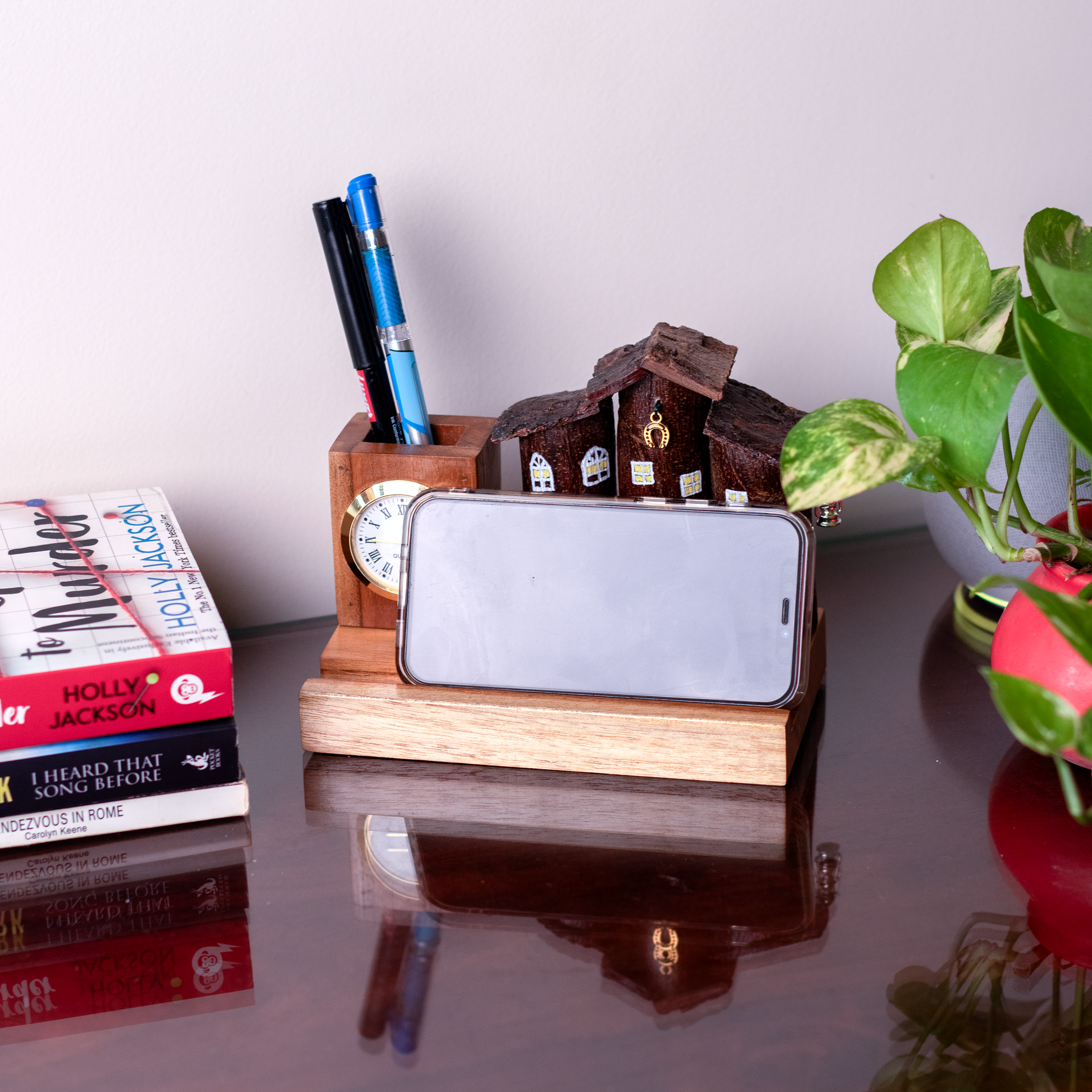 - MULTIPURPOSE: It provides a slot to securely hold a mobile phone, allowing for hands-free viewing or charging, Dedicated space to store your pens with watch to track your time.