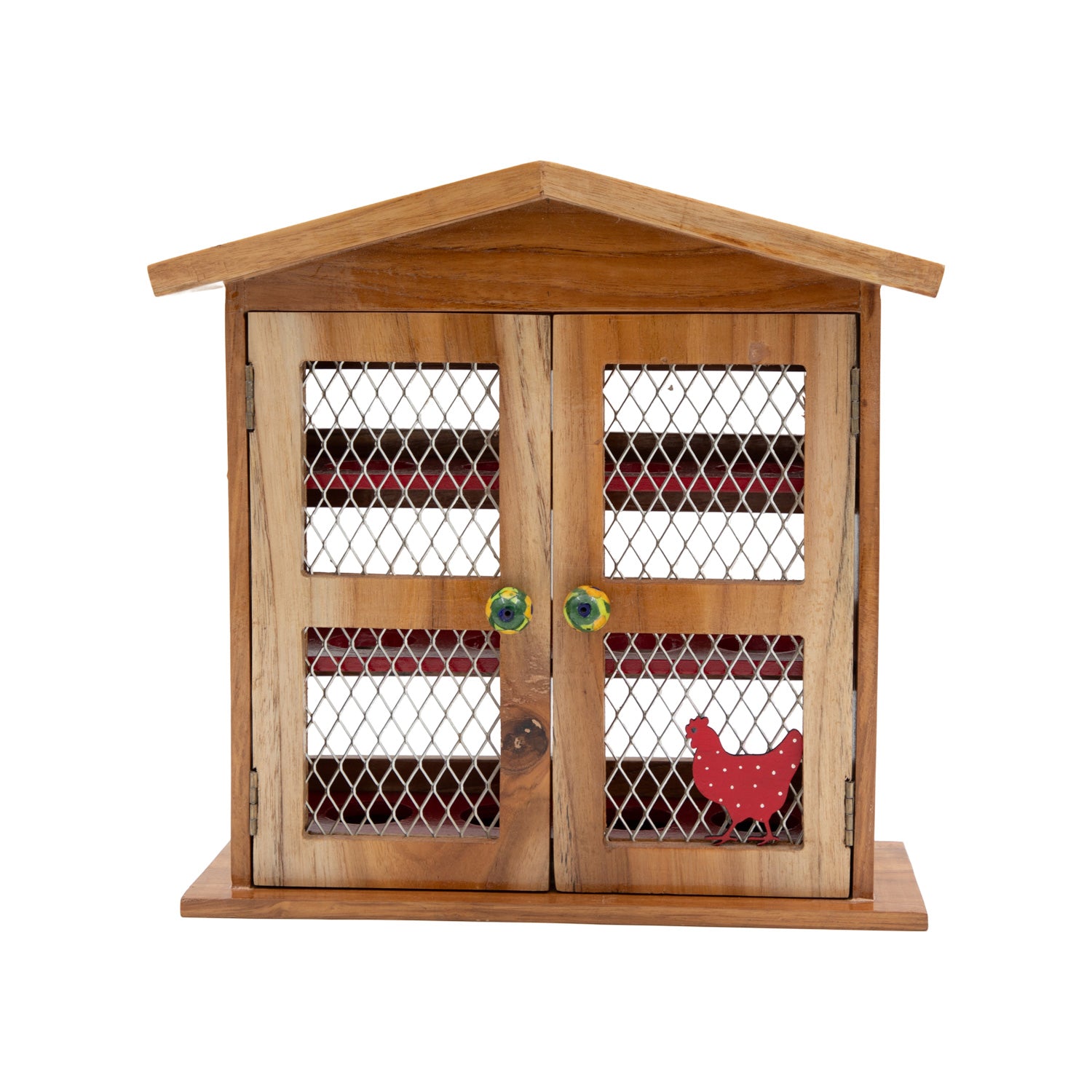 Have a cracking day! Keep your eggs safe and in style with this pretty shabby chic egg house. With room for a dozen eggs,  you  can rest easy knowing the eggs will be out of harm's way until needed! Lovely design with wire mesh fronted panels and a pretty ceramic knobs.