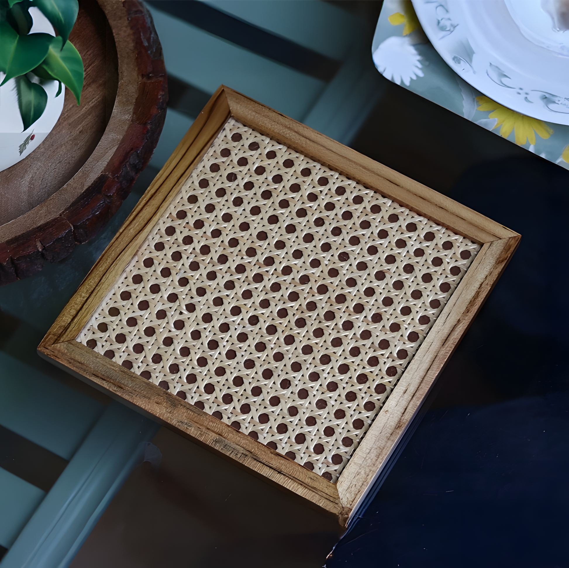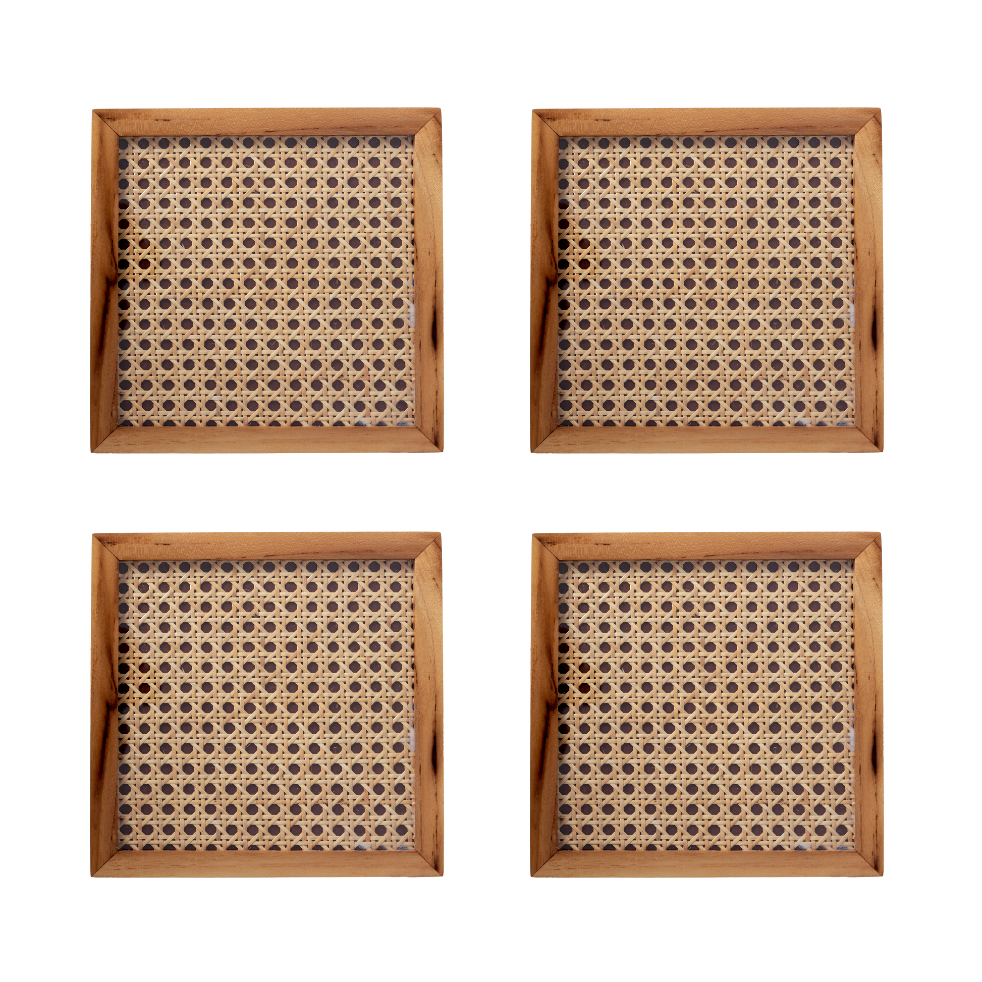 The Weaver's Nest Teak Wood Cane Coasters - Set of Four - Large