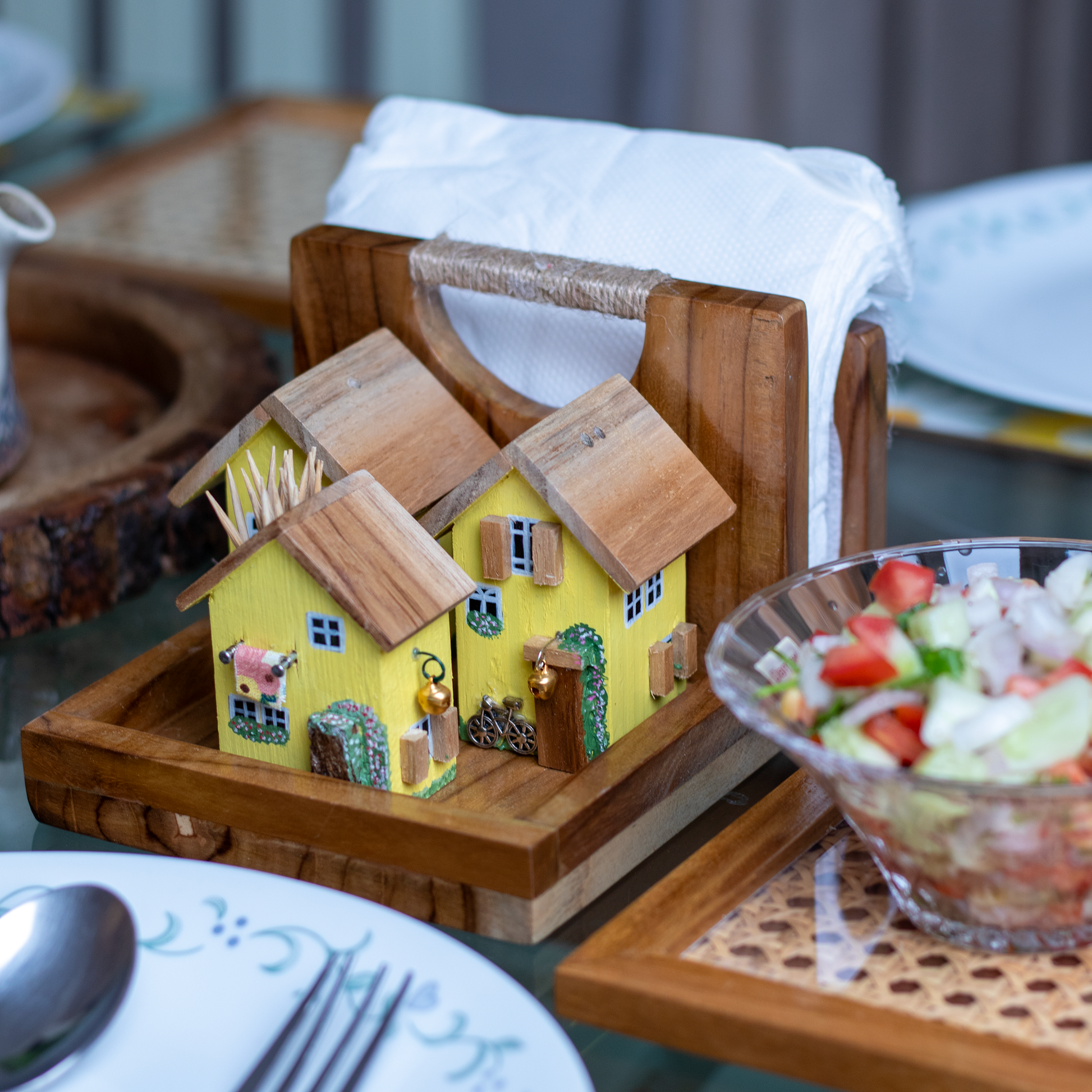 - MATERIAL: Made with Teak Wood and Rattan Cane, this product would look beautiful for years. The top is covered with a clear Acrylic Sheet, making it easily cleanable, just wipe it with a damp cloth. The Product has been given a water-resistant melamine coating.