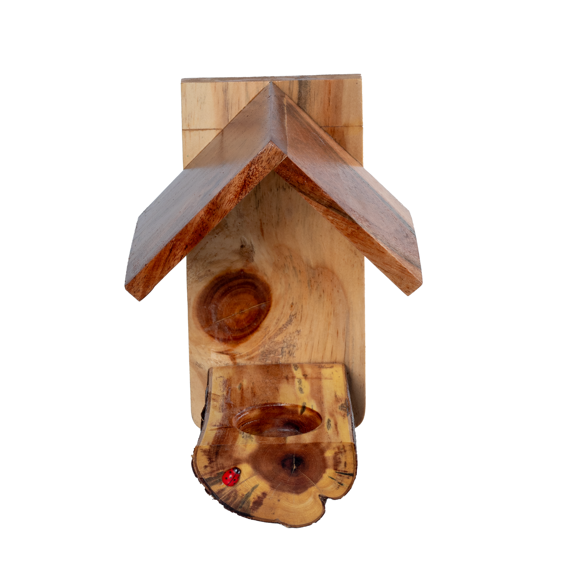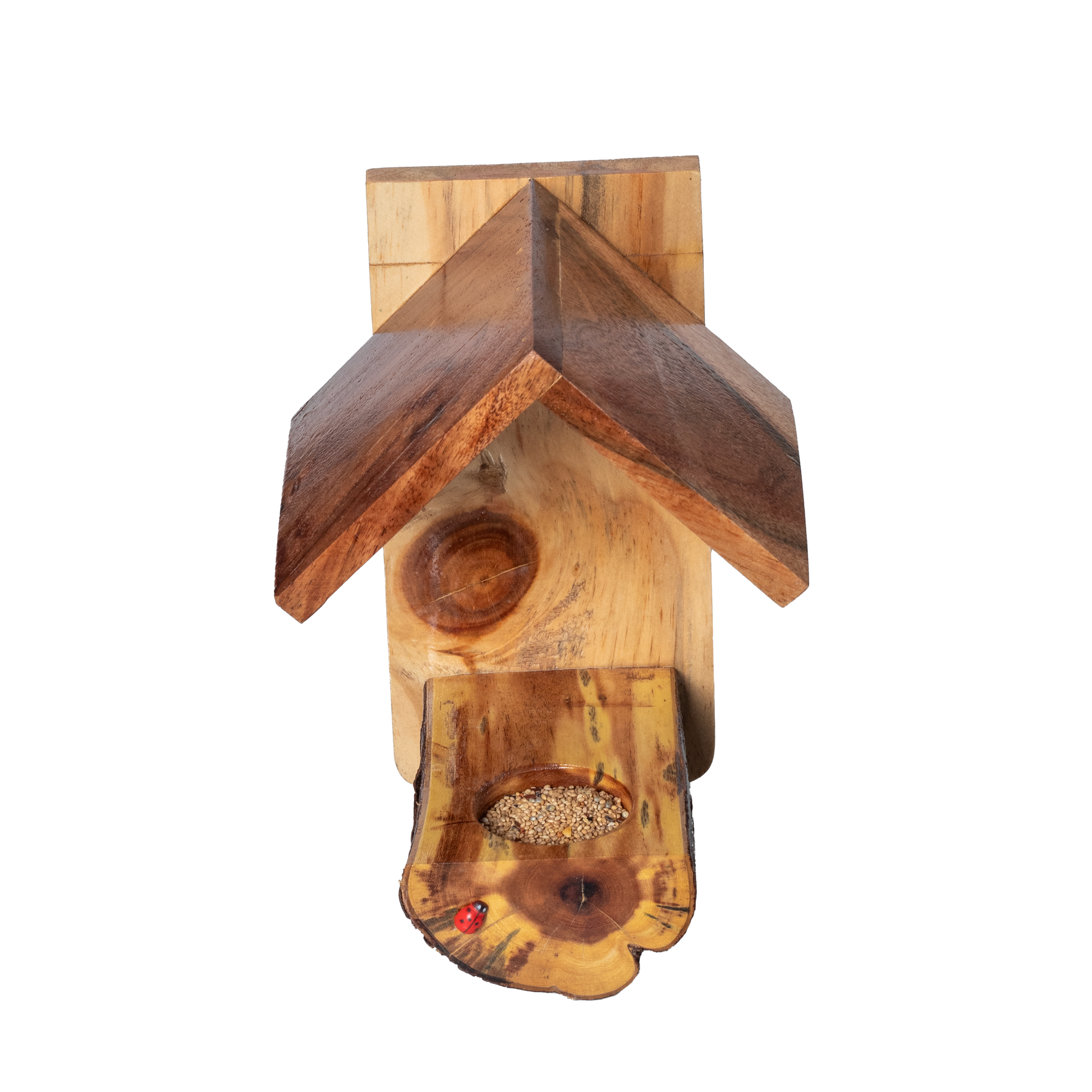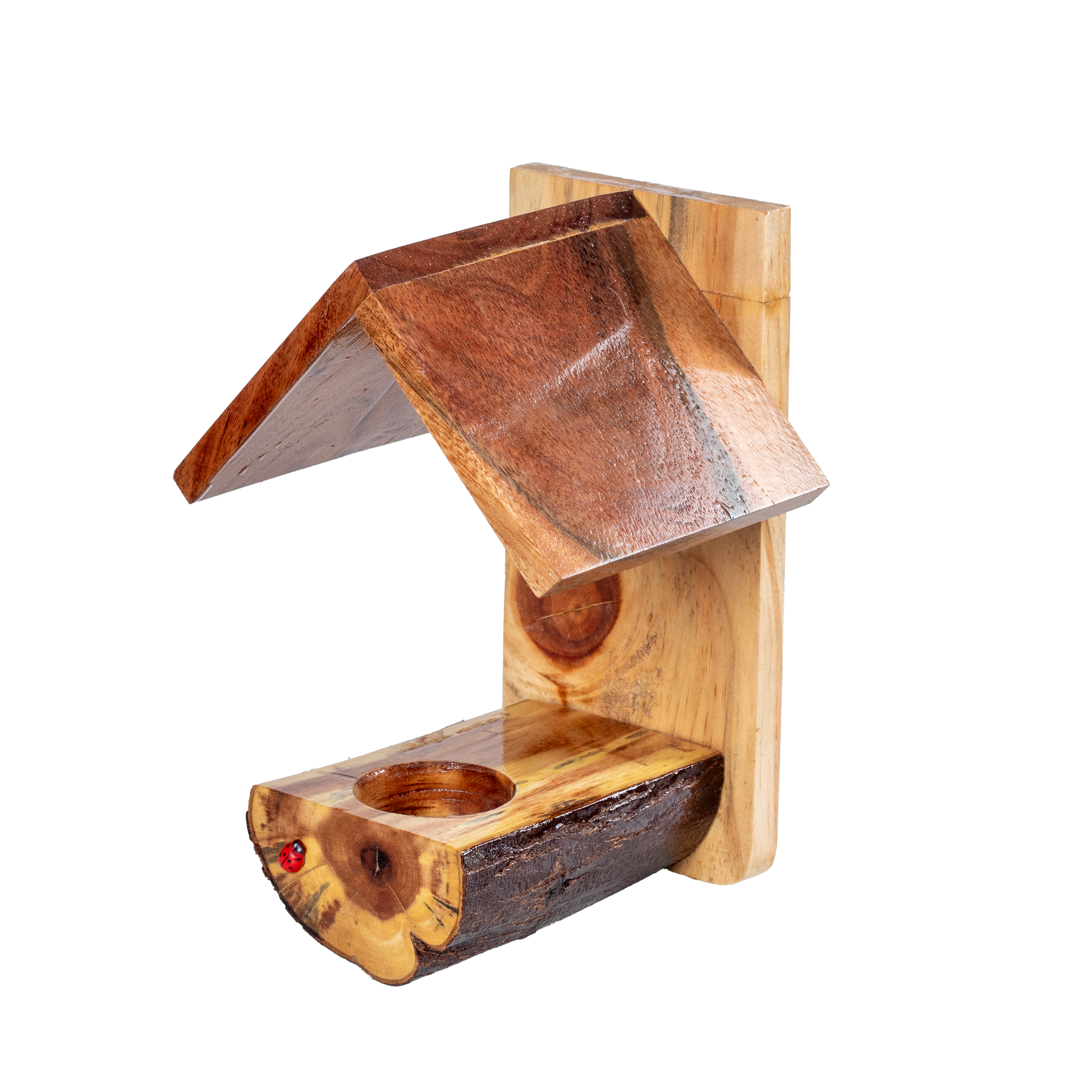 - AESTHETICALLY DESIGNED: It's a charming, rustic wooden bird feeder designed from a single wooden log. The cavity in the log allows the filling of bird feed. The birds get ample space to perch and feed. The rustic design makes it a charming addition to a garden or balcony setting. It's designed to be a shelter as well as a feeding station, suitable for small birds like sparrows, finches, or tits.