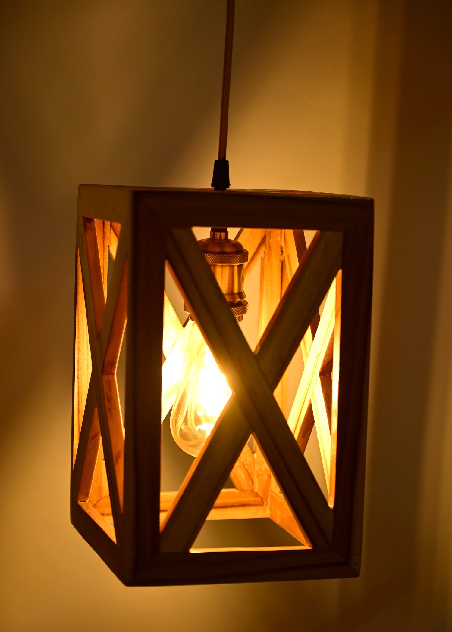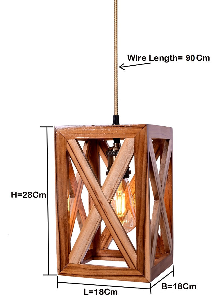 The Weaver's Nest Rustic VintageTeak Wood Hanging Light/Lamp, Square Shaped Crossed Design Pendant Light for Home Decor, Living Room, Study Room
